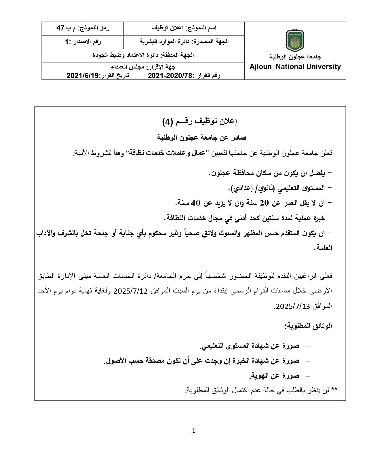 اعلان توظيف /عمال وعاملات خدمات نظافة