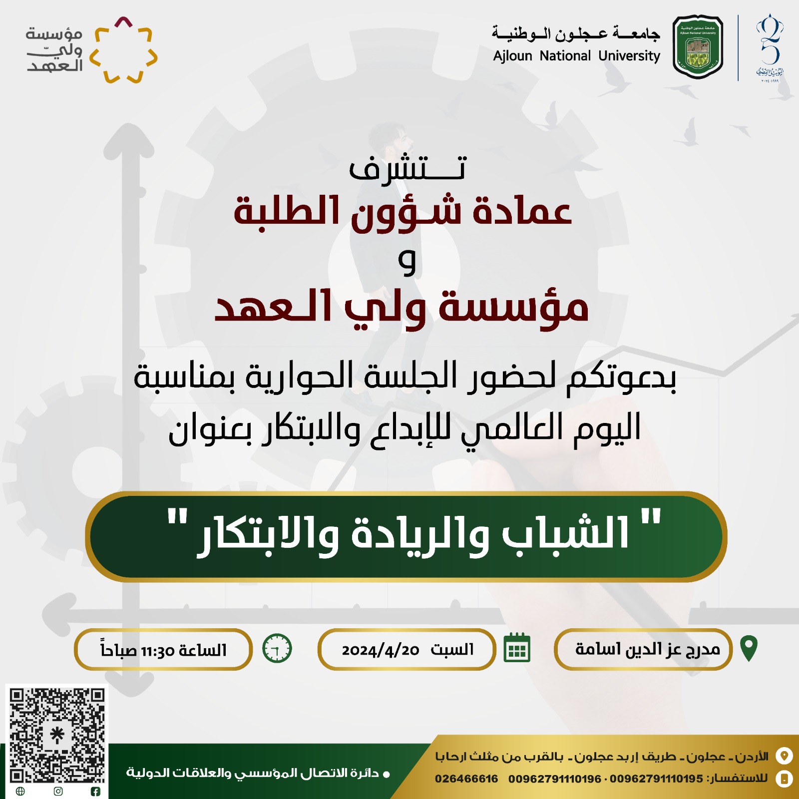 تدعو جامعة عجلون الوطنية الخريجين الحاليين والطلبة المتوقع تخرجهم، إضافة إلى خريجي الأعوام السابقة إلى ضرورة تعبئة بياناتهم الشخصية عبر منصة الخريجين الإلكترونية. حيث يُعد هذا الإجراء متطلبًا أساسيًا لاستكمال إجراءات براءة الذمة، ولمتابعة الطلبة الأعزاء وتعزيز التواصل مع أرباب