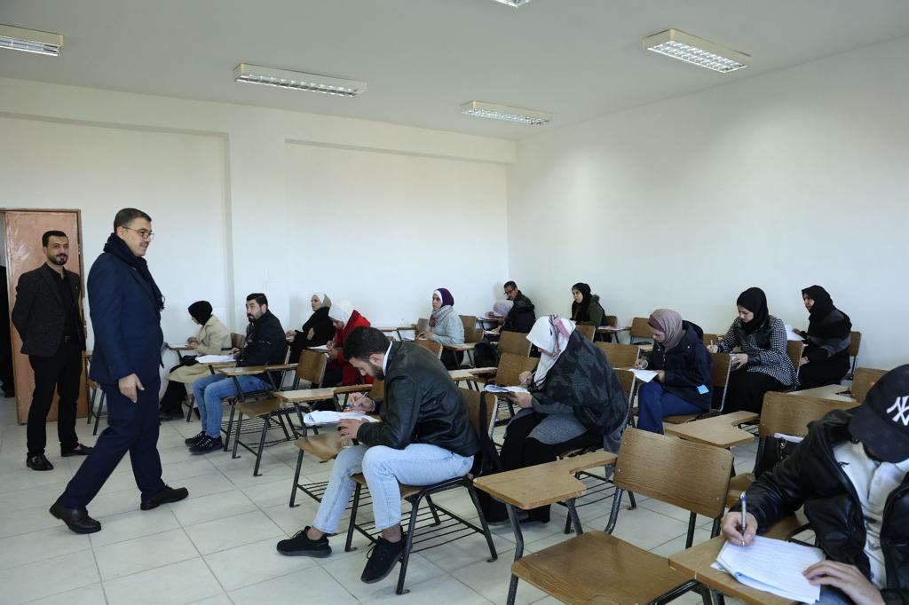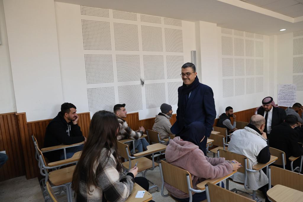 تفقد رئيس جامعة عجلون الوطنية الأستاذ الدكتور فراس الهناندة اليوم السبت سير عملية الإمتحانات النهائية للفصل الدراسي الأول من العام(٢٠٢٣ / ٢٠٢٤ ) في عدد من القاعات الصفية بمختلف كليات الجامعة.