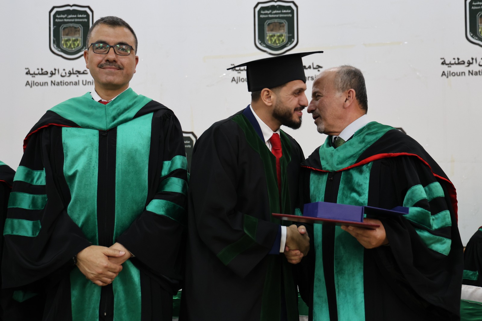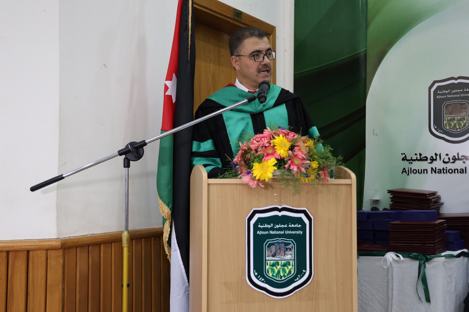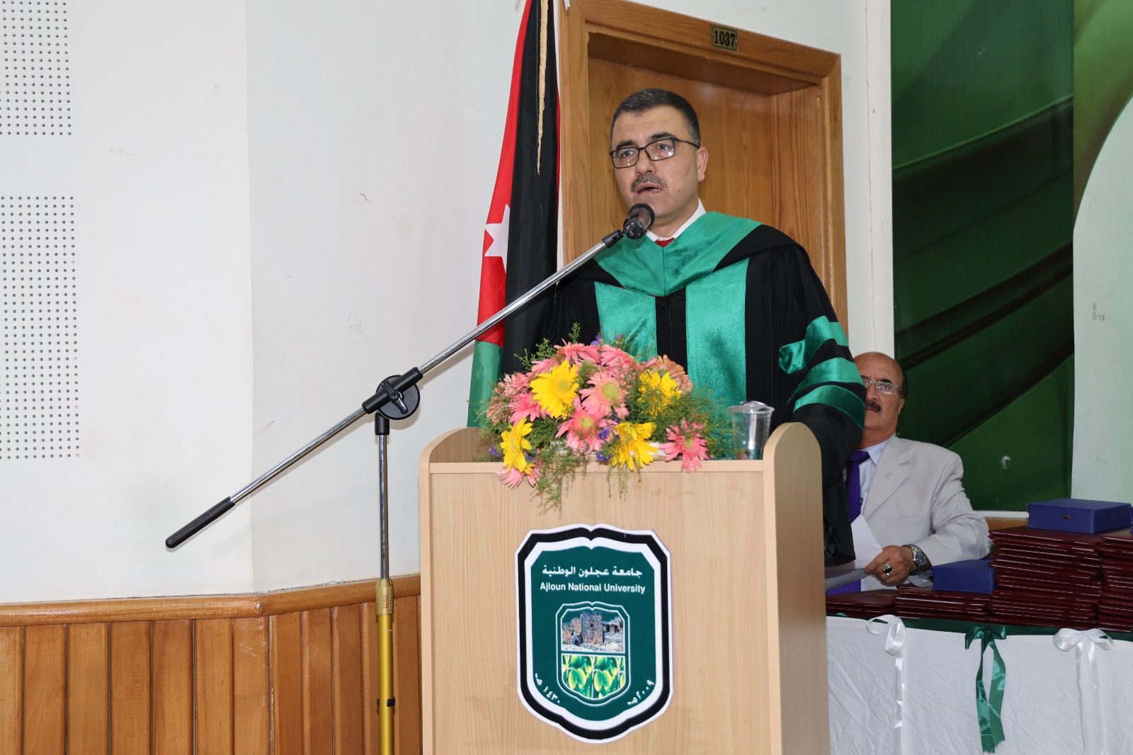 وأشار الهناندة الى أنني أخاطبكم من الجامعة التي احتضنتكم لأعوام وكانت الأم الحنون عليكم حتى بقسوتها كانت لمصلحتكم ولتخرجوا منها على قدر عالي من العلم والمعرفة والتميز لتلتحقوا بميادين العمل والشرف في الوطن الكبير معاهدين الله عز وجل أن تبذلوا كل ما بوسعكم لتعزيز ما تم بنائه من الذين سبقوكم من الأباء والأجداد.