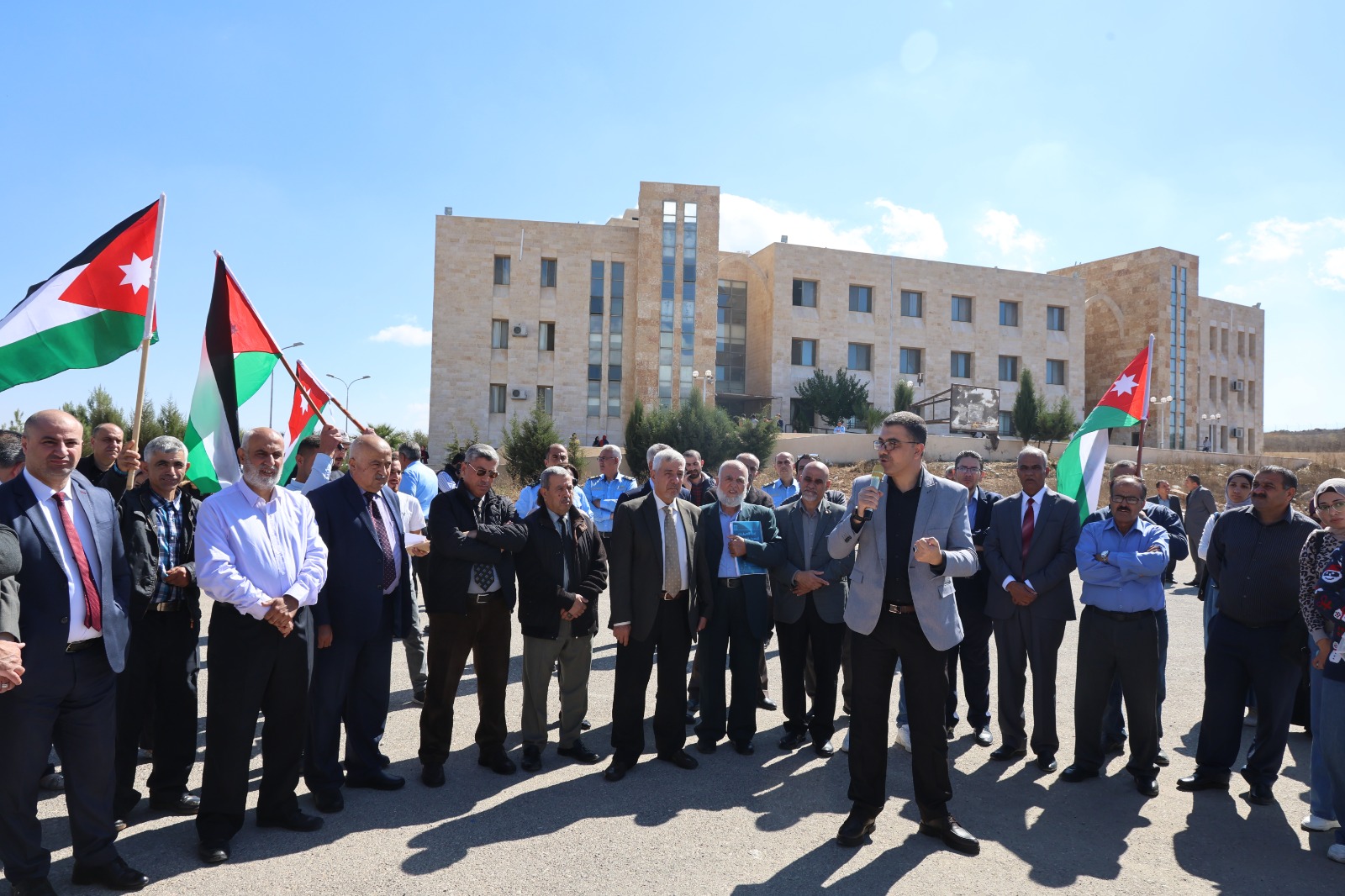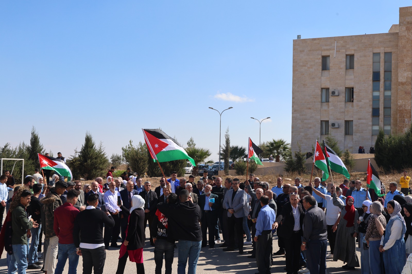 وعبر طلبة الجامعة عن دعمهم والتفافهم حول الجهود التي يبذلها جلالة الملك دفاعًا عن القضية الفلسطنية والحق في الحياة والحرية والتصدي لجميع الاجراءات الاسرائيلية التي تستهدف حق الشعب الفلسطيني في اقامة دولتهم على الاراضي الفلسطينية، معبرين رفضهم واستنكارهم وإدانتهم لهذا العدوان الغاشم على قطاع غزة ودعمهم لأشقائهم الفلسطينيين، داعين الله عز وجل أن يمد أهل فلسطين والمرابطين على أراضيها بالنصر والقوة والثبات في وجه قوات الاحتلال الإسرائيلي.