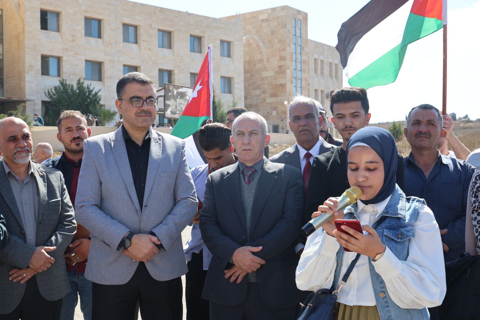 نظمت عمادة شؤون الطلبة في جامعة عجلون الوطنية بحضور رئيس جامعة عجلون الوطنية الأستاذ الدكتور فراس الهناندة، وعدد من اعضاء الهيئتين التدريسية والادارية في الجامعة، وحشد من طلبتها، وقفة تضامنية مع غزة احتجاجا على انتهاكات قوات الاحتلال الإسرائيلي وذلك تعبيرا عن استنكارهم ورفضهم للعدوان الصهيوني على الأراضي الفلسطينية، ودعما للشعب الفلسطيني المقاوم للاحتلال، ورفع المشاركون في الوقفة التضامنية التي أقيمت في ملعب الجامعة، العلمين الأردني والفلسطيني،