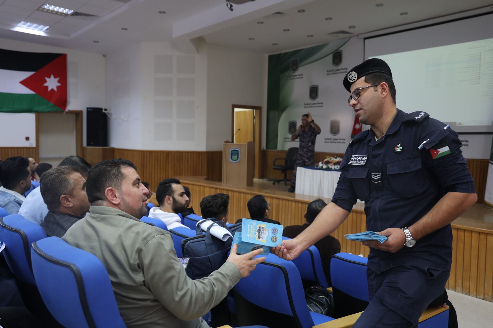 نظمت عمادة شؤون الطلبة في جامعة عجلون الوطنية محاضرة بعنوان بعنوان ” امشي بامان” بالتعاون مع مديرية الامن العام /الدفاع المدني في عجلون بحضور عميد شؤون الطلبة الدكتورة ريم الكناني وعدد من أعضاء الهيئتين التدريسية والإدارية وطلبة الجامعة في مدرج عز الدين اسامة.